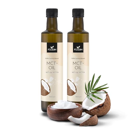 FOODIN MCT-olja 1000 ml (2 x 500 ml) – 100% kokosolja, medium chain triglycerider, glutenfri, vegansk, perfekt för ketogen kost, LCHF, bulletproof kaffe och energiboost