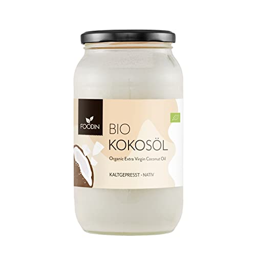 FOODIN Ekologisk kokosolja, premium Virgin & Natural, kallpressad, ekologisk kokosolja, bäst för hud och hår, rå matkvalitet - perfekt för stekning och matlagning (1000ml)