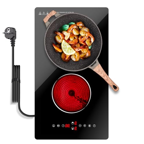 Borrallio 2 Zoners Elektrisk Spishäll, 3000W Keramisk Dubbel Kokplatta med Touchkontroll, 9 Värmelägen, Timer, Barnlås, För Inbyggnad & Bänkskiva, 220V