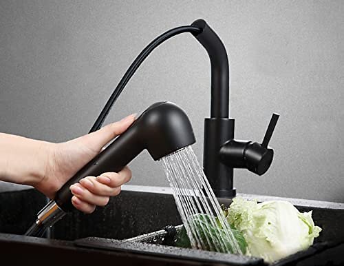 CREA Köksblandare kran, kökskran med utdragbar spray, enkel spak blandare handfat kran vridbar pip med magnetisk spray utdragbar, rostfritt stål matt svart