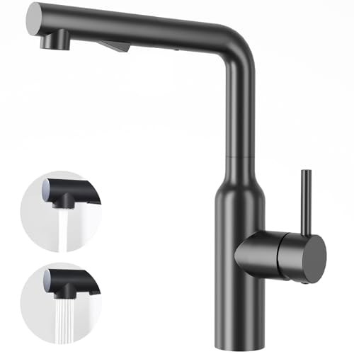 ONECE Väggmonterad Kökskran med 2 Jettyper, Kran Kök med Vridbar Pip, Engrepps Köksblandare, Diskbänkskranar i 304 Rostfritt Stål, 360° Vridbar Blandare, Anti- Skållningsskydd av Silikon, Svart