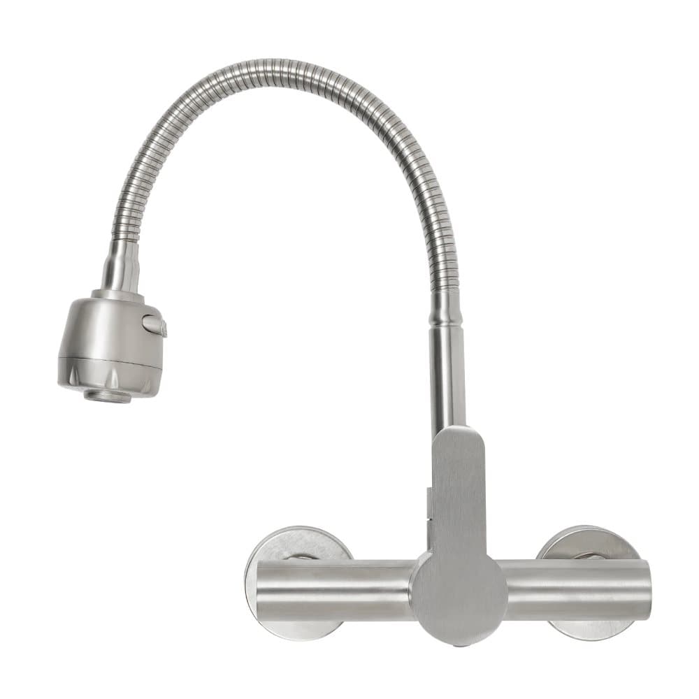 Köksblandare - Väggmonterad enspaksblandare - Rostfritt stål - Varmt och kallt vatten - Svängbar 360° pip - Silver
