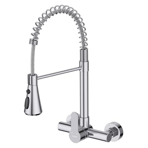 HURRAN Väggmonterad köksblandare, köksblandare med 3 utgångslägen, 360° vridbar kran i rostfritt stål, krom