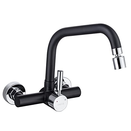 ONECE Väggmonterad Kökskran med 2 Jettyper, Köksblandare med 3/4 Tums Anslutning, Kran Kök med Vridbar Pip, Vattenkran Blandare för Diskmaskin/Tvättmaskin, Diskbänkskranar i 304 Rostfritt Stål, Svart