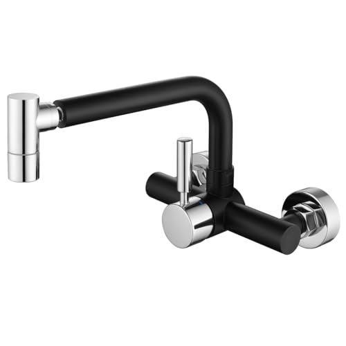 Tondiy Väggmonterad Köksblandare med 2 Lägen och 2 Installationsmetoder, Svart Köksblandare med 360° Roterande Väggdiskbänk, Kranar med ett Handtag med 360° Vridbar Pip, Rostfritt Stål