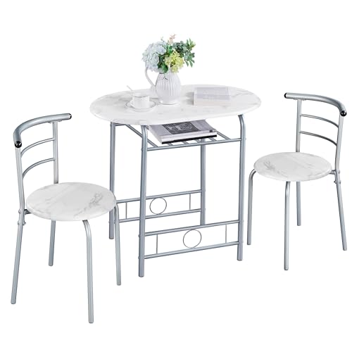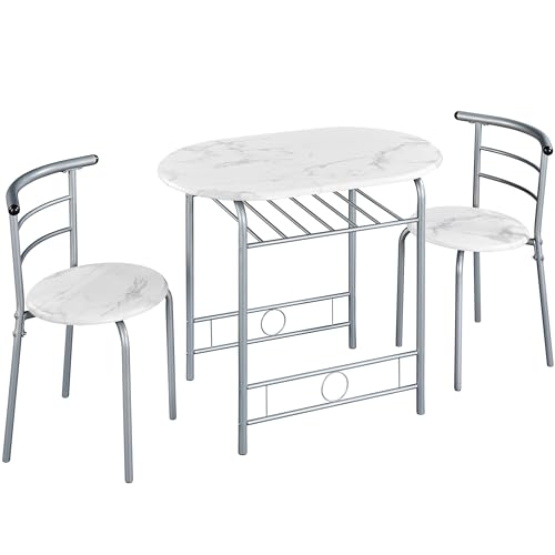 Yaheetech Matgrupp bordsgrupp för 2 personer med 1 matbord och 2 stolar köksbord med förvaringsfack matbord armstödsstol matbordsset, vit