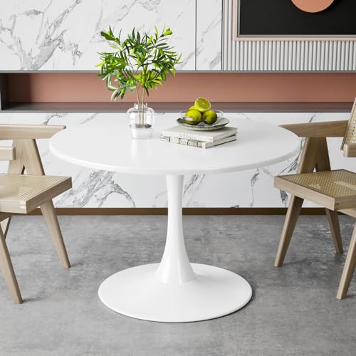 TWSOUL runt matbord 80 cm, köksbord, kök litet matbord, med pelarfot i tulpandesign, stålram, för 2–4 personer, för matsal, vardagsrum, kontor, café, bar, vit