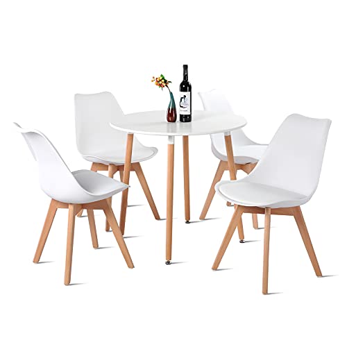 FURNITABLE Matbord| runt köksbord| bordsset för matsal, kök och vardagsrum| vitt bord med 4 vita stolar, Avec des chaises blanches