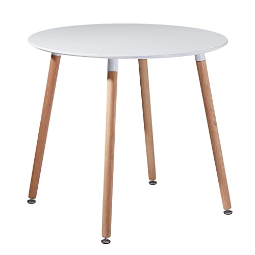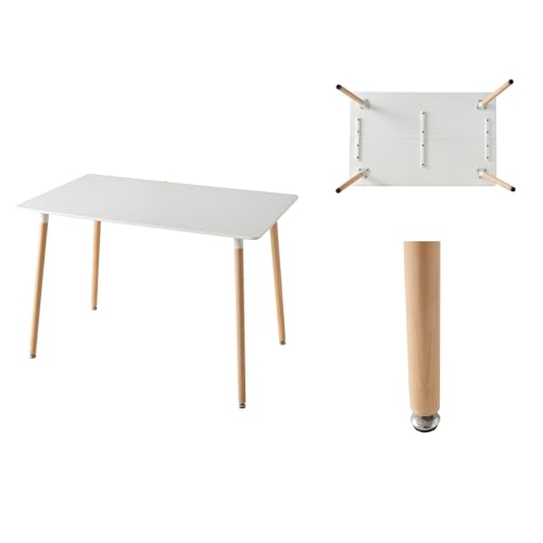BenyLed Modernt matbord med ben i bokträ; köksbord i nordisk stil för matsalen; runt bord för hemmakontoret (vit, 110 x 70 x 74 cm)