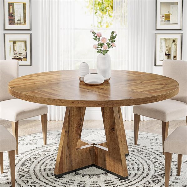 Tribesigns Runt matbord – bondgårdsmatbord för 4 personer, rustik brun trätopp och ben, 120 cm matsal och köksbord