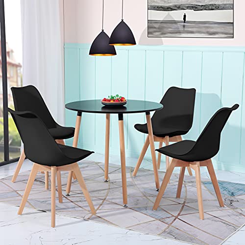 FURNITABLE Matbord | Runt köksbord | Modernt set med matsalsstolar | Skandinaviskt runt bord svart bord med 4 svarta stolar
