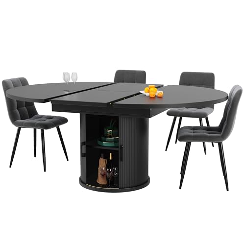 MOBETTRES Matbord, utdragbart, matbord, köksbord, balkongbord, utdragbar bordsskiva, runt matbord, utdragbar till oval, 118–158 cm (svart)