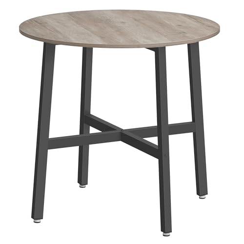 VASAGLE litet matbord, runt köksbord, för vardagsrum, kontor, 80 cm d, 75 cm H, industriell design, greige melerat bläck svart KDT080G01