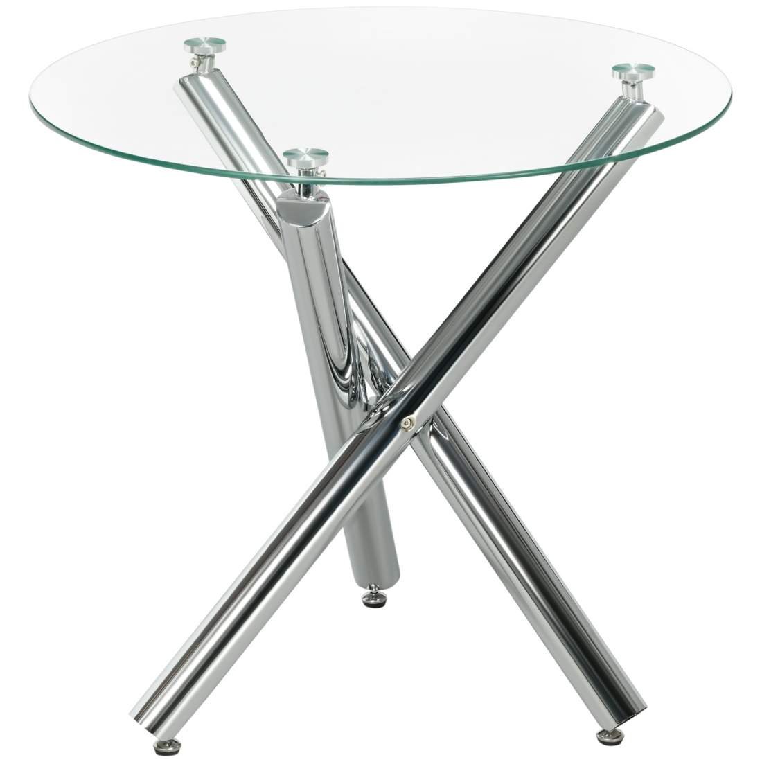 Matbord, Runt Matsalsbord, Köksbord För 4 Personer, Vardagsrumsbord Med Glasbordsskiva, Stål, Ø80 X 74 Cm, Transparent