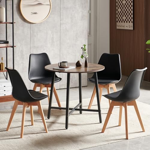 FURNITABLE Matrumsgrupp, matbord med 4 stolar, matgrupp, runt köksbord med en uppsättning av 4 matrumsstolar, sittgrupp för vardagsrum, kök (vintagebrun-bläcksvart bord + 4 svarta stolar)
