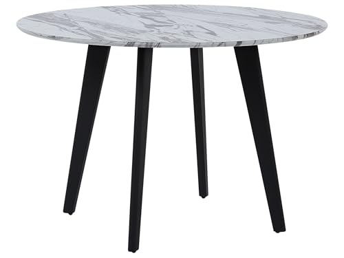 Runt Matbord Köksbord ø 110 cm MDF Marmoreffekt Svarta Järnben Mosby