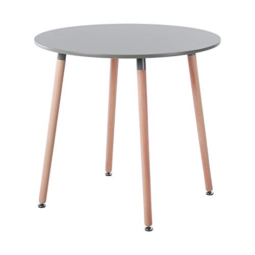 H.J o runt matbord, köksbord, modernt matbord, träbord MDF, 4 ben, natur, 80 x 80 x 75 cm, grått
