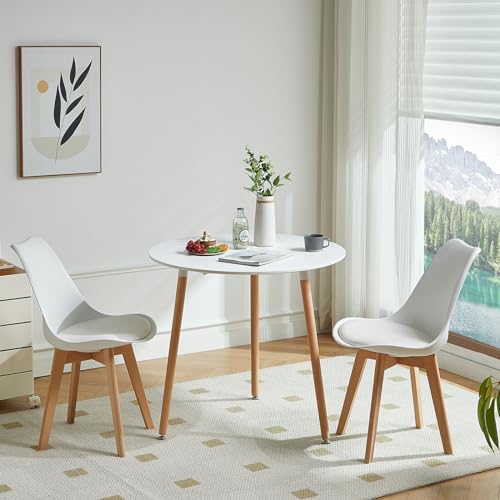 LafeuR Runt matbord med 2 stolar, matgrupper, set om 2 matrumsstolar med köksbord, matsalsgrupp, bordsgrupp sittgrupp för balkong, kök, vardagsrum (vitt bord + 2 vita stolar)