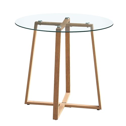 FURNITABLE matbord glas runt köksbord skandinaviskt soffbord litet bord metallben ekfinish gummiunderlägg, 80 x 80 x 75 cm