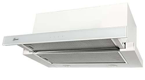 GURARI 117 White Prime köksfläkt 60 cm i vitt, glas vit, 1000 m³/h, mycket stark sugkraft, frånluft, cirkulationsdrift