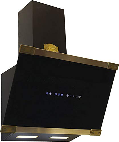 Kaiser AT 6445 AD köksfläkt vägghuva 60 cm, huvuddraghuva, 1 250 m3/h, svart glas, metalllister antikguld , köksfläkt, frånluftshuva, cirkulationshuva, kantutsugning, LED-display