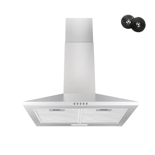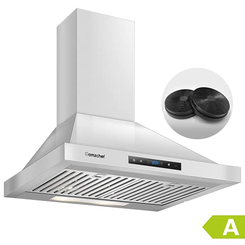 AMZCHEF köksfläkt 60 cm 600 m³/h frånluft väggfläktar aktivt kolfilter vägghuva fläktar 3 effektnivåer, huva av rostfritt stål, LED-belysning