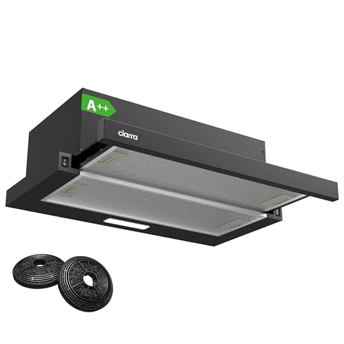 CIARRA CBCB6906D infälld kökslåda klass A köksfläkt 60 cm 370 m3/h - integrerad fläkt med 2 hastigheter - LED-belysning - avlopp och återvinning - kolfilter ingår - svart