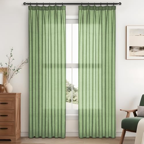 MRTREES Gardin grön transparent gardin veckband 220 x 140 cm (H x B), set om 2, linneutseende, gardiner med skensystem för vardagsrum, sovrum, köksfönster