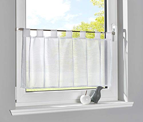 Elbersdrucken, halvtransparent bistrogardin med tunnelgenomföring spume 00 vit, 45 x 140 cm, fönstergardin för kök, köksfönster, insynsskydd 202071
