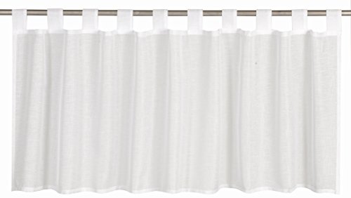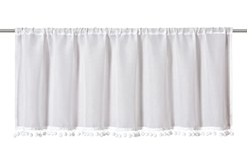 Elbersdrucke Halvtransparent bistrogardin med tunnel och tofs Loni 00, vit, 45 x 140 cm, gardin för kök, köksfönster, insynsskydd 202088