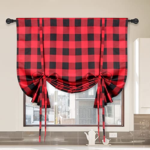Simple Deluxe Justerbar knytskärm och gardiner för köksfönster, buffelrutigt bondgård värmeisolerat mörkläggningsgardiner för rum, 107 cm B x 160 cm L, svart och röd