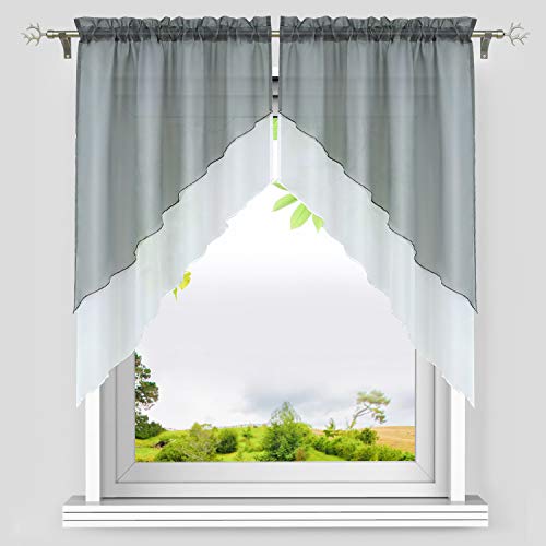 HeichkelL Voile fönstergardin båge set 2 delar, små fönster, gardin, dragsko korta stores, dubbelskiktade köksgardiner grå B x H 80 x 80 cm (varje styck)