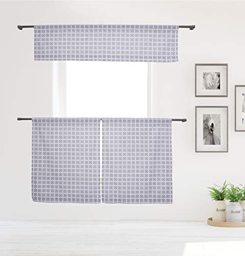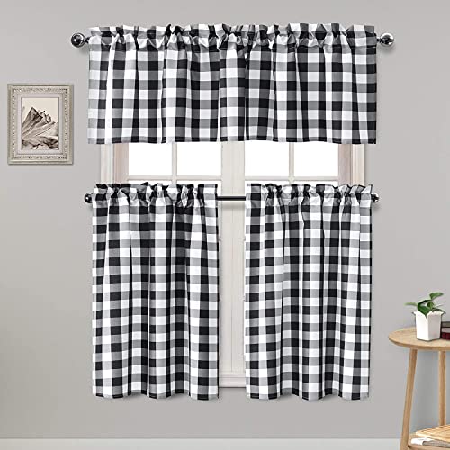 Hiasan 3-delad halvskir köksgardiner – ljusfiltrering buffel pläd nivå och gardinsatser, svart och vit