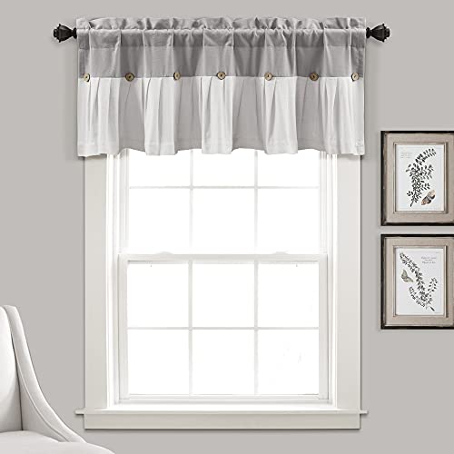 Lush Decor Köksgardiner med linneknappar i rustik stil, rustikt blockmönster med snäckformade knappar, rustik färg, 132 cm breda x 46 cm långa, grå och bruten vit