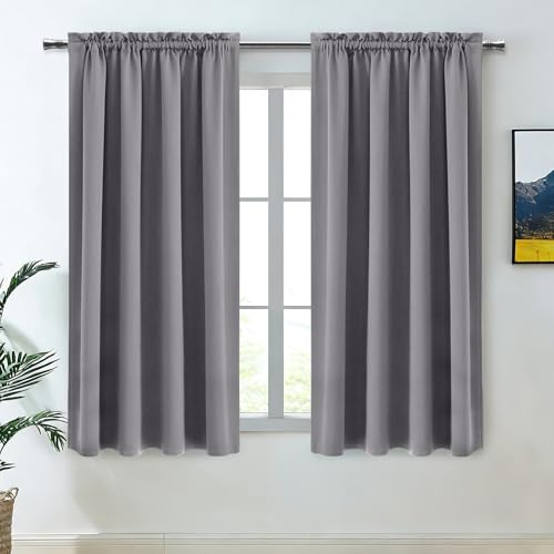 DWCN Mörkläggningsgardiner värmeisolerade energibesparande sovrums- och köksgardiner fönsterbehandlingar, B 97 x L 114 cm, set med 2 grå gardinstång