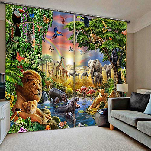 NBVGHJ Anpassad storlek 3D djur djungel fönster gardiner bakgrund vardagsrum sovrum tunna köksgardiner för barn draperier dropship (W) 150 × (H) 180 cm
