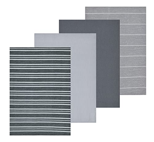 Sleepdown texturerat randigt tryck och våffelhanddukar 100% bomull halv panama - superabsorberande kökshandduk av lyxig hotellkvalitet - 4-pack - grå - 46 cm x 65 cm