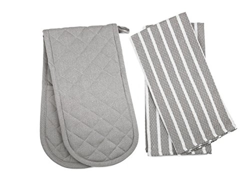 Penguin Home® Bomull Ugn Handske & Kökshandduk 3-Delar Set, Grå