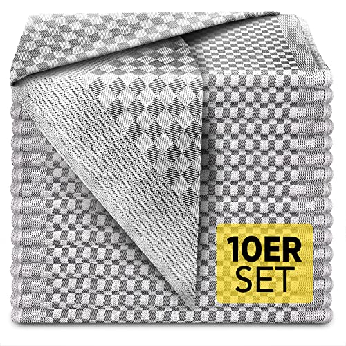 Loco Bird Set med 10 bomullshanddukar - 50x70cm grå rutig - Högkvalitativ kökshandduk - Premium kökshanddukar - Diskhanddukar för torkning