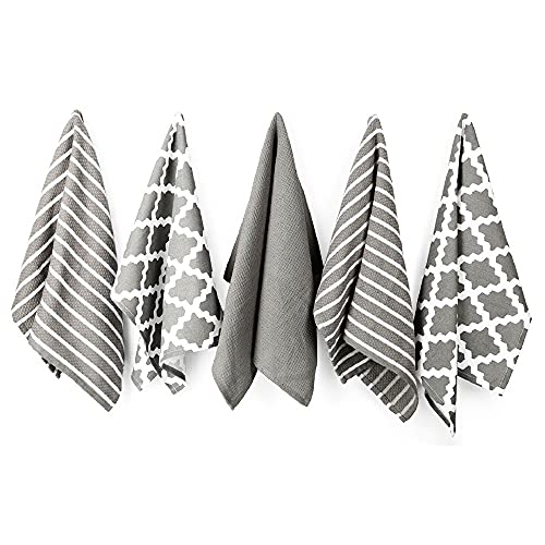 Penguin Home® Bomull Kökshandduk 5-Bitar Set, 65 cm Längd x 45 cm Bredd, Grå