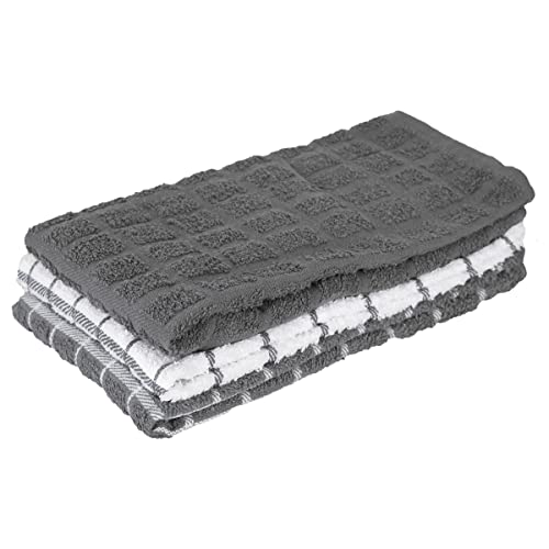 Ritz Premium kökshandduk mycket absorberande, supermjuk, långvarig, 100% bomull frotté diskhanddukar, handdukar, kökshanddukar, barhanddukar, 3-pack, 63,5 cm x 38 cm, grå