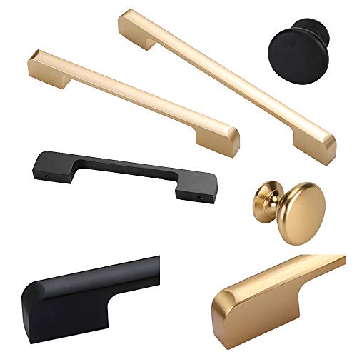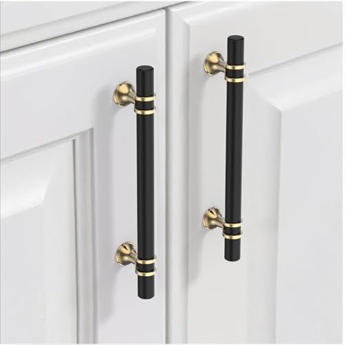 9BUILD 10 stycken skåphandtag svart guld hålavstånd 128 mm handtag för köksskåp räfflade möbelhandtag kökshandtag möbler köksskåp skåpdörrhandtag EU0044
