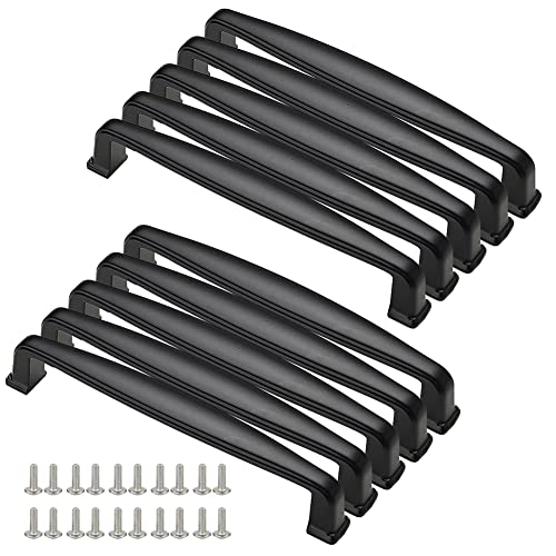 FURNIWARE 10 stycken skåphandtag, möbelhandtag 128 mm hålavstånd matt svart, kökshandtag lådhandtag, zinklegering möbelhandtag för köksskåp skåp lådhandtag
