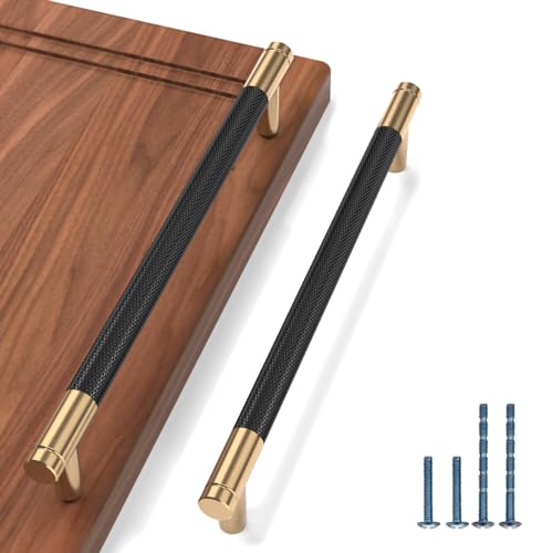 9BUILD 10 stycken skåphandtag svart och guld hålavstånd 192 mm handtag för köksskåp räfflade möbelhandtag kökshandtag möbler köksskåp skåpdörrhandtag EU0020