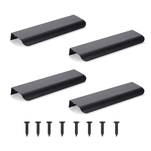 4 stycken möbelhandtag dolda dörrhandtag skåphandtag aluminium lådhandtag dolda handtag osynliga möbelhandtag kökshandtag – svart, 12 cm rundad kant)