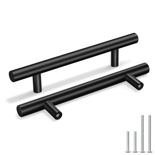 Guldvarmt 15 stycken möbelhandtag 128 mm – kökshandtag svart köksskåp dörrhandtag köksskåp dra LS201BK128 T stånghandtag ihåligt rostfritt stål relinghandtag inklusive skruvar