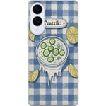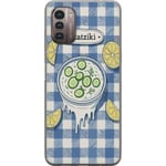 Nokia G21 Genomskinligt Skal Tzatziki skål grekisk mataffisch dill citron gurka blå rutigt mönster köksinredning vintage stil tryck