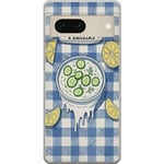 Google Pixel 7 Genomskinligt Skal Tzatziki skål grekisk mataffisch dill citron gurka blå rutigt mönster köksinredning vintage stil tryck