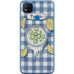 Xiaomi Redmi 9C Genomskinligt Skal Tzatziki skål grekisk mataffisch dill citron gurka blå rutigt mönster köksinredning vintage stil tryck