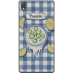 Sony Xperia Z3 Genomskinligt Skal Tzatziki skål grekisk mataffisch dill citron gurka blå rutigt mönster köksinredning vintage stil tryck